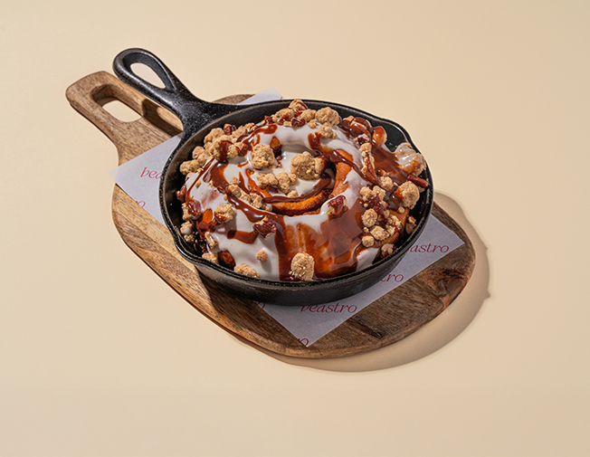 Brioche soaked in cinnamon custard, nutella-toffee syrup, vanilla ice cream, chocolate crumbs