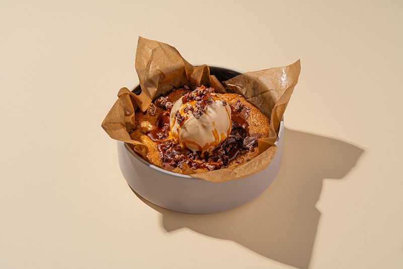 Brown butter chocolate chip cookie, vanilla ice cream, salted caramel sauce